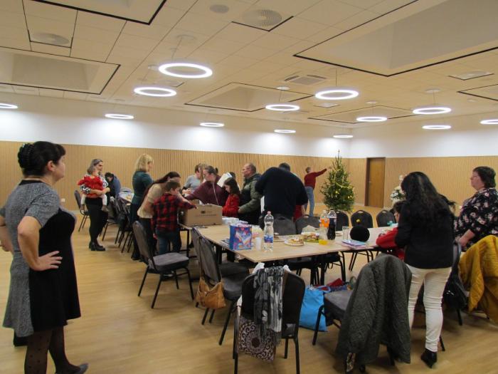 A karácsonyi ünnepségünkön főleg a kisgyermekes tagjaink szoktak részt venni. Így volt ez most is. A fa feldíszítése és a résztvevők elhelyezkedése után a gyermekek között egyre nagyobb lett a mocorgás. Valahonnan megsejtették, hogy várjuk a Mikulást. A felnőttek javaslatára, hogy biztosan ide találjon, Mikulás dalokat keztek énekelni a gyermekek. Néhányan megszeppentek mikor betoppant a nagy fehérszakállú. A többség azért bátor volt mikor szólította őket a Mikulás a csomagok átvételére. Krampuszok helyett az egyesület elnöke segített a puttony cipelésében. A gyerekek nagy örömmel vették át a csomagjaikat.