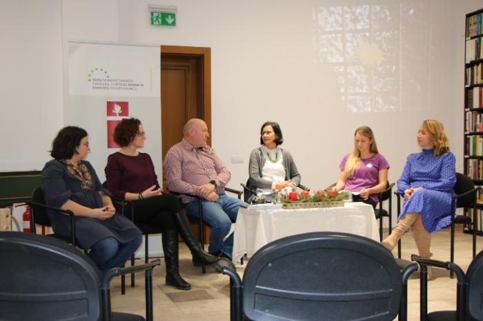Egyesületünk decemberben is több programot biztosított a helyi családok számára. A megszokott heti tevékenységeink mellett, első alkalommal vállaltunk szerepet a város és megye kiemelkedő intézményei által, az RMDSZ Nőszervezet aktív támogatásával elkezdett 16 napos figyelemfelkeltő programban, mely a Nők Elleni Erőszak Elleni Mozgalom (NEEEM) projekt keretében is zajlott. Korábbi évekkel ellentétben, idén komoly összefogás született a szakmai intézmények, kulturális terek és a civilek közt, így a Városháza, a Szociális és Gyermekvédelmi vezérigazgatóság családon belüli erőszak osztálya, a helyi Kulturális Központ, Hallgatlak telefonszolgálat és iskolapszichológusok közreműködésével, egyesületünk is szerepet vállalt az érintett személyek fele fordulásban, segítésben, így január hónaptól kezdődően támogató csoportot indítunk az egyesületi találkozóhelyen. Az alkalmakat igény szerint tartjuk, de szeretnénk mindenképp havi rendszerességgel hathatósan segíteni, útbaigazítani az érintetteket. Erről és egyéb fontos információk átadásáról sikerült szakmabelieket egy asztalhoz ültetni december 9-én a NEEEM mehetünk el mellette kerekasztal alkalmával, ahol meghívottjaink szakmaiságával, tapasztalatával, tanácsaival felvértezve a kellemes hangulatú, olykor kellemetlen témájú beszélgetés után, igyekszünk civil szervezetként kivenni társadalmi kötelességünket a sokszeletű, sokrétű tortából, és segíteni a közintézmények, iskolai tanácsadók, szociális munkások tevékenységét.