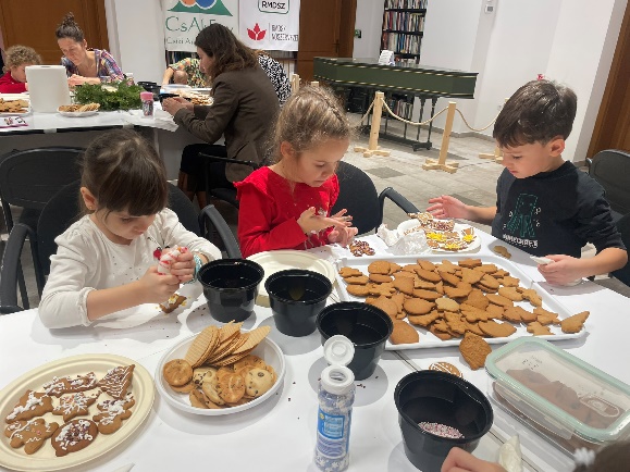 December 18-án megtartottuk a szokásossá vált mézeskalács díszítést, melyet idén is adventi áhitattal fűszereztünk, és mely rendezvényünket az RMDSZ Nőszervezet és helyszíni támogatónk, a Hargita Megyei Kulturális Központ jóvoltából tudtuk igazi közösségi élménnyé varázsolni, a több mint 300 db. mézeskalácsot 29 felnőtt és gyermek írta, rajzolta és formálta saját ízlése szerint, és természetesen fogyasztotta is, hiszen az a legizgalmasabb pillanat, amikor a frissen felvitt cukormázzal együtt elropogtatható egy-egy írott mézes. Házigazdáink Kovács Karolina és Gábor Veronika édesanyák voltak, akik gondosan készítették elő az est minden pillanatát, a cukormáztól társasjátékokig mindent bepakolva kosaraikba. Solymosi Alpár unitárius esperes lelkipásztor pedig rövid adventi gondolatokkal, majd halhangú gitározással tette teljesebbé a csütörtöki estét a város szívében található Kulturális Központban, öröm volt együtt lenni, kikapcsolódni, elcsendesedni és elmélyülni a közös alkotásban a karácsonyi, évvégi ünnep előtt.
