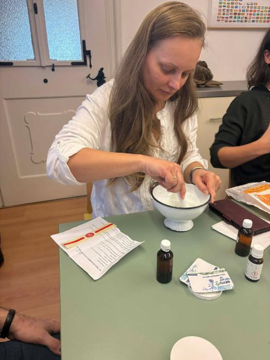A téma: A fitoterápia története és a gyógynövények korszerű használata a modern gyógyászatban. A foglalkozáson a törzsi rítusoktól egészen a mikrokapszulákig száguldottunk, a gyógynövényes drogpadláson száradó kamillák, levendulák hatóanyagait bőrtápláló krémbe és csokibonbon masszába kevergettük. ????????