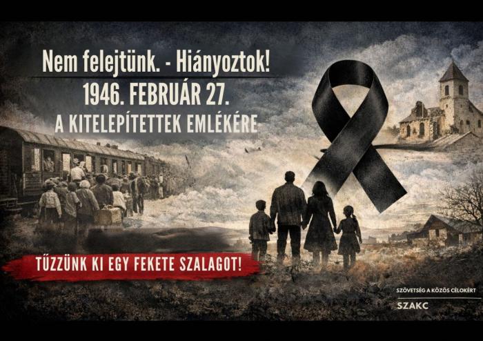 A Szövetség a Közös Célokért (SZAKC) és alapító tagszervezetei, mint a Szlovákiai Magyar Társadalmi és Közművelődési Szövetség – Csemadok, a Magyar Szövetség, a Szlovákiai Magyar Szülők Szövetsége, a Szlovákiai Magyar Pedagógusok Szövetsége és a Szlovákiai Magyar Cserkészszövetség 2026. február 27-én fekete szalag viselésére hívják fel a felvidéki magyar közösség minden tagját, családjait, fiataljait, iskoláit, civil szervezeteit és egyházi közösségeit.