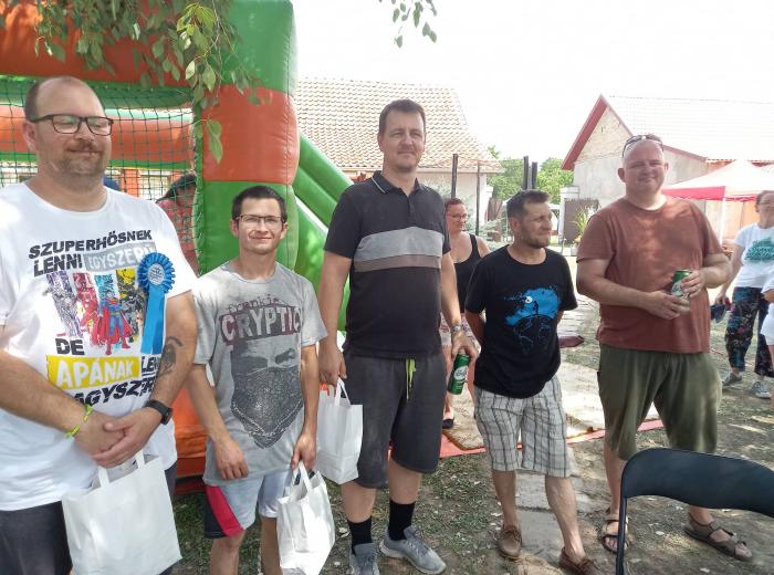 A forró júliusi napok egyikén sikeresen rendeztük meg az apák napját. Közösségi Házunk udvarát berendeztük a vendégek fogadására. Szorgos asszonysereg dolgozott a finom ebéd elkészítésén. Palóclevest és csörögét ettünk, jégkrémmel hűsítettük magunkat. A gyerekeknek feladatsort kellett teljesíteniük, hogy az elektromos kisautókra felülhessenek, aminek a népszerűségét semmi felül nem múlja. Az apukákat alaposan próbára tettük, megmutatták sokoldalúságukat a tréfás feladatokkal tűzdelt versenyen. Volt hangszerbemutató is, ahol nagy érdeklődéssel figyeltünk. Jókat beszélgettünk, nevetgéltünk, jó volt együtt lenni.