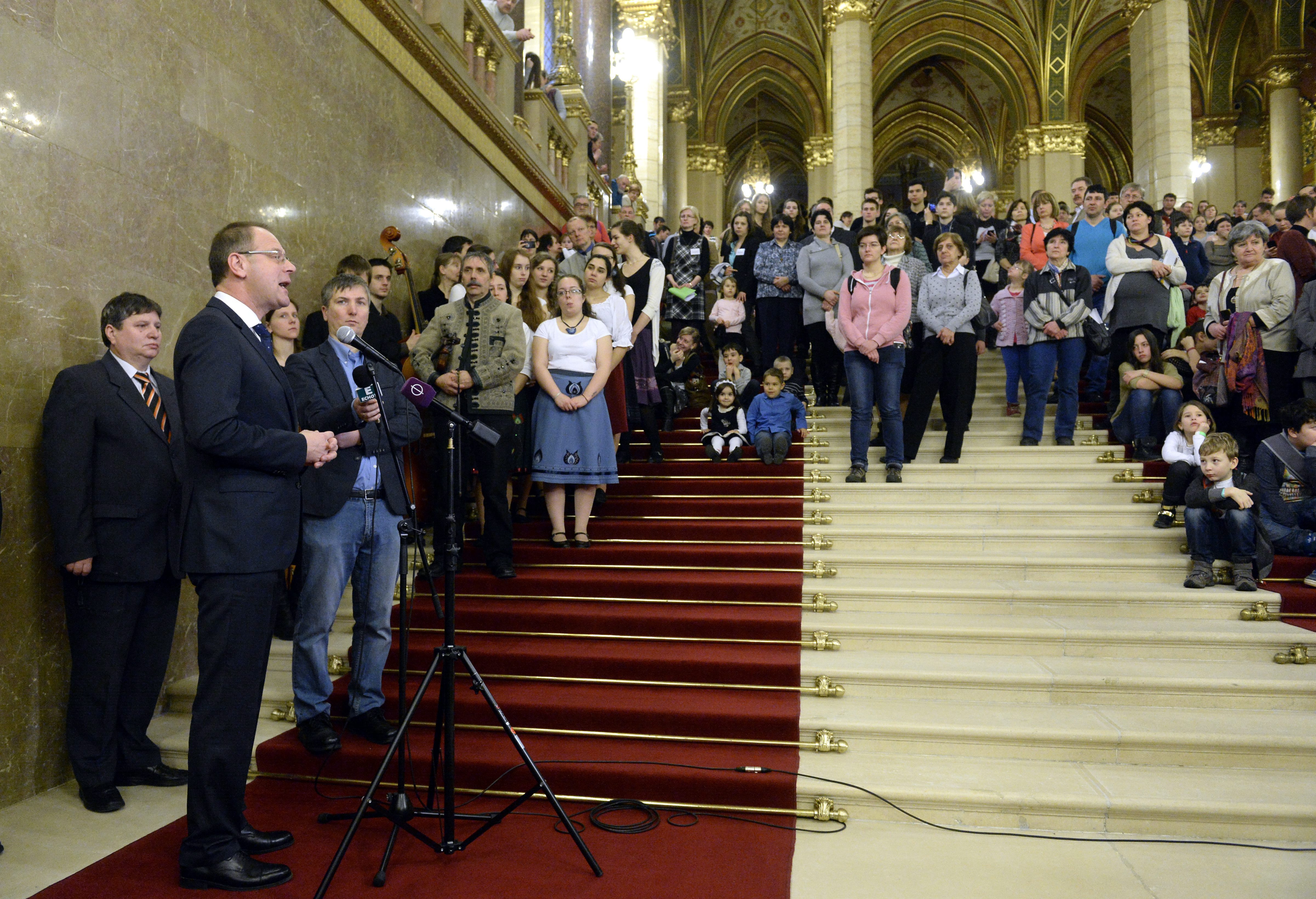 Novák Katalin, az Emberi Erőforrások Minisztériumának (Emmi) család- és ifjúságügyért felelős államtitkára a meghívott több száz család, köztük háromszáz gyermek előtt azt mondta, a családokat jöttek ünnepelni az Országházba, ahol nap mint nap azért dolgoznak, hogy a családok erősebbek legyenek. Arról beszélt, hogy vannak Magyarországon és a határon túl is olyan családok, amelynek tagjai elszakítva, távol élnek egymástól, közöttük azonban elszakíthatatlan, életre szóló kapocs van. Ugyanez a kapocs köti össze a határon belüli és túli magyarokat is - jegyezte meg. Soltész Miklós, az Emmi egyházi, nemzetiségi és civil társadalmi kapcsolatokért felelős államtitkára úgy vélekedett, Európa hatalmas értékválságban van, és ahhoz, hogy ezen úrrá legyünk, valamint megmaradjunk Európában és a Kárpát-medencében, szükség van azokra, akik merik vállalni a házasságot, a gyerekek születését, felnevelését, a nagy családot. A Kárpát-medencei családtalálkozót negyedik alkalommal rendezték meg a Házasság hete programsorozat keretében a Parlamentben, ahol egész nap különféle játékok, kézműves foglalkozások, családi programok, idegenvezetés és táncház várja a gyerekeket és szüleiket. A családi nappal párhuzamosan a delegációs teremben 17 ország ifjúságának képviselői tartanak nemzetközi konferenciát a családalapítási és gyermekvállalási kedv ösztönzésének lehetőségeiről. A házasság hete mozgalom két évtizede indult az Egyesült Királyságban, és ma már 28 országában tartják meg a programsorozatot. Magyarországon 2008 óta ünneplik.