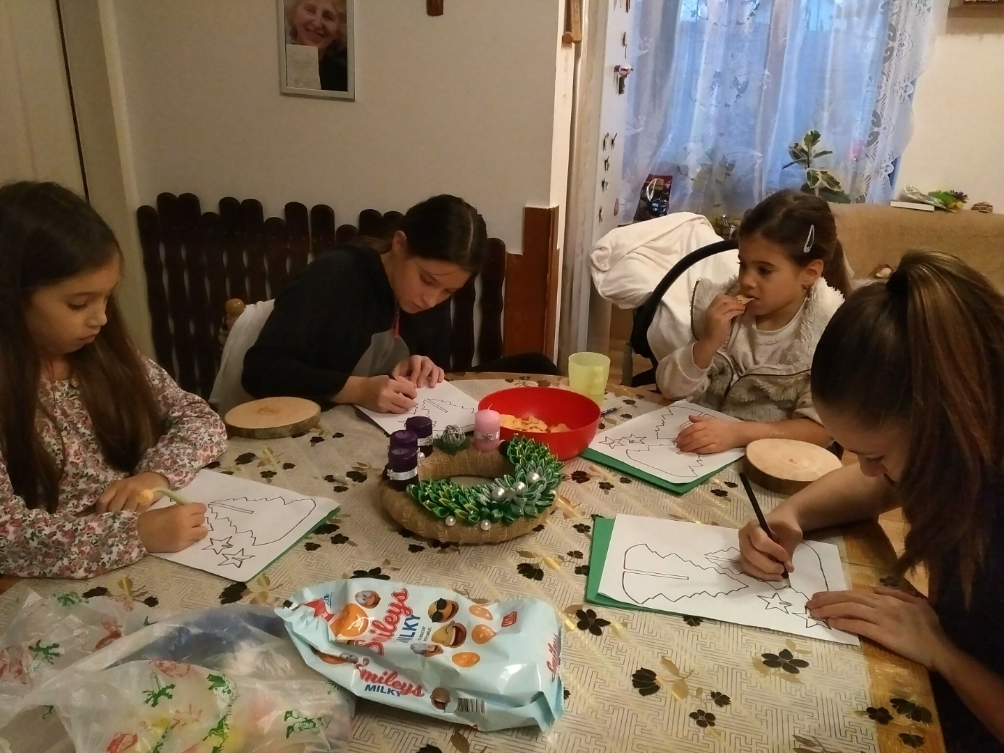 A következő napok pedig előkészületek voltak a szerdán szétosztásra került karácsonyi kézműves alapanyagok összekészítésére, ami több alapból tevődik össze. És az édesség csomagot is előkészítettük, amit ilyenkor a karácsonyi  ünnepre szoktunk adományozni. Száz harminc gyereknek készítettünk csomagokat, amit az egyesületben osztottunk ki, de sajnos a vírushelyzet közbe szólt és sok családnak házhoz szállítottuk, mivel karanténban voltak többen. De a lényeg az volt, hogy az örömszerzés ne maradjon el a családoknál és a gyerekek ne maradjanak le programunkról. A család együtt dolgozzon, közös élmény és az együttöltött hasznos idő, így próbáltunk örömet szerezni.