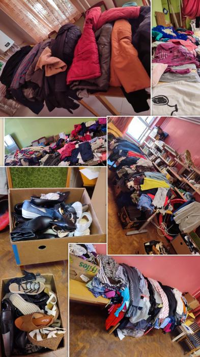Rengeteg ruha adomány gyűlik fel nálunk. A város lakói zsákszámra adják le a (sajnos válogatásra szoruló) használt ruhát. A hűvösebb idő közeledtével sok melegebb ruhával együtt hirdetünk nyitvatartási idő alatt, de külön hétvégén is válogatási lehetőséget.
