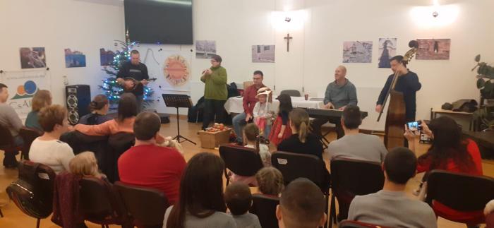 A 2025-ös év utolsó egyesületi programja egy közös szervezésű, pályázati megvalósítás volt a Kárpát-medencei Családszervezetek Szövetségevel közösen. Közel 65 személy, szülők és gyerekeik vettek részt a Hargita Megyei Sérültek Egyesülete Összefogás Házában december 29-én a baróti Kelekótya együttes vidám hangulatú koncertjén. Bogyócska és barátai átdolgozott Kaláka dalokkal és más gyermekdalokkal készültek, és a program végén még hangszerpróbára is sok kerülhetett a kisebbek, bátrabbak örömére.