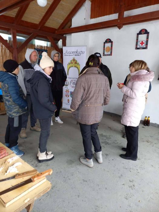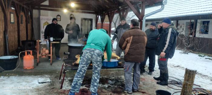 Vidám közös munkával, építő beszélgetésekkel indult 2026 os év a Tájházban .A gyermekeket töpörtős pogácsával és a felnőtt vendégeket körtepálinkával fogadtuk., reggel 6 órakor. Minden vendég végig követhette, és részt vehetett a munkában, a disznó feldolgozásában. Meglepően sok fiatal férfi jött el és próbálkozott a hús szeletelésével, paprikás főzéssel.